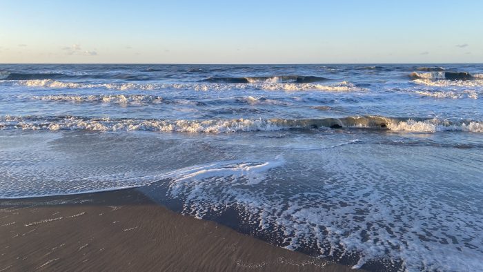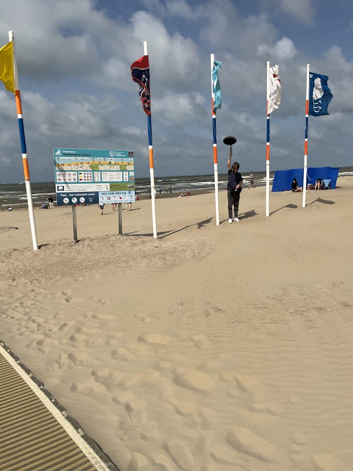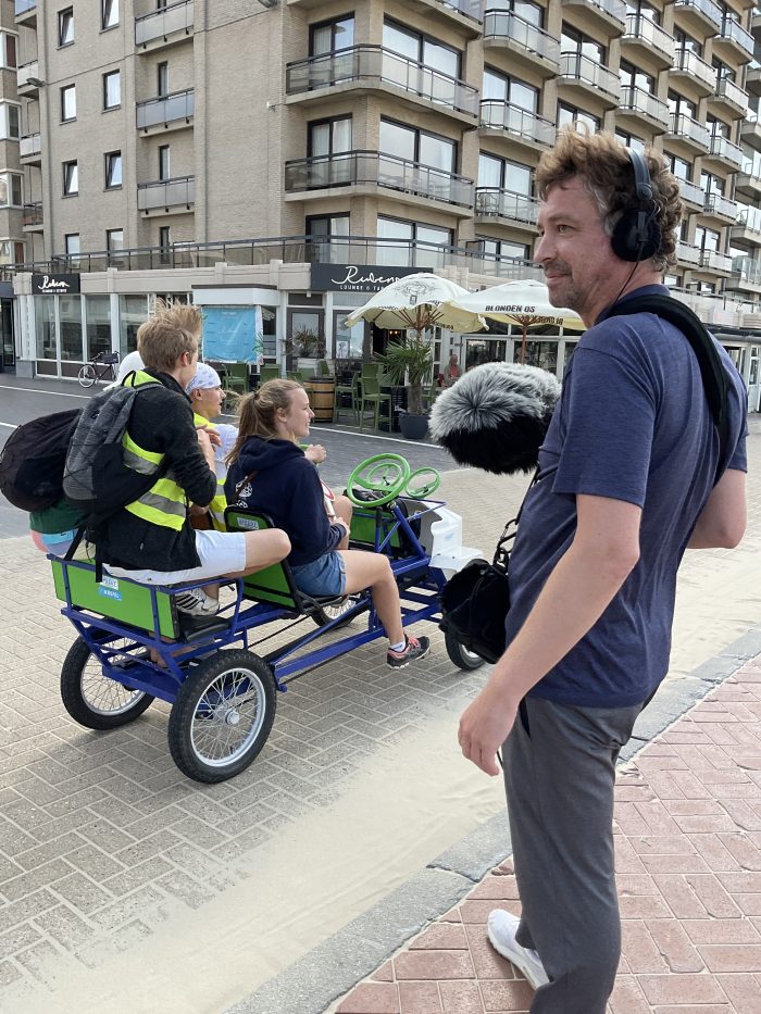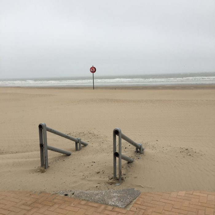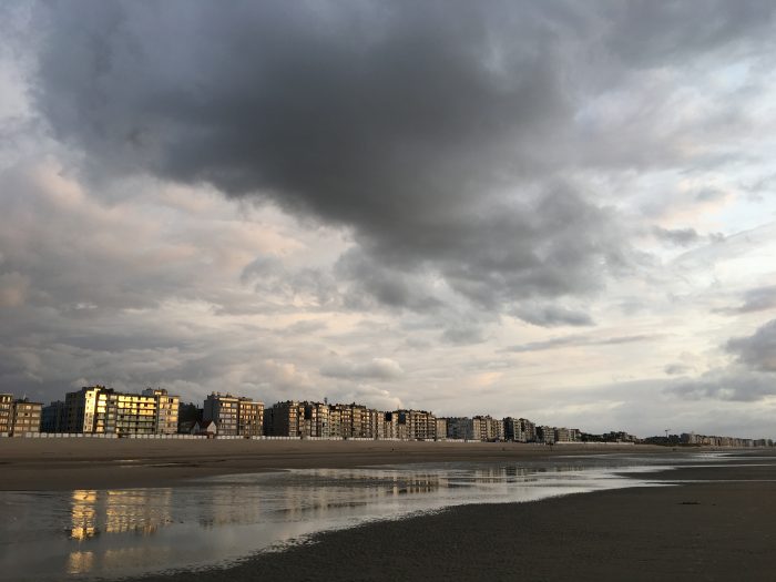 Une carte postale de la mer du Nord. Des belges marchent dans leurs souvenir. Le paysage s’apprête à sortir du cadre.