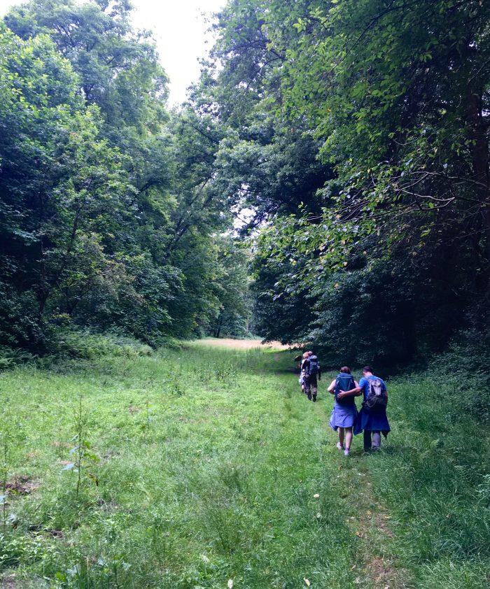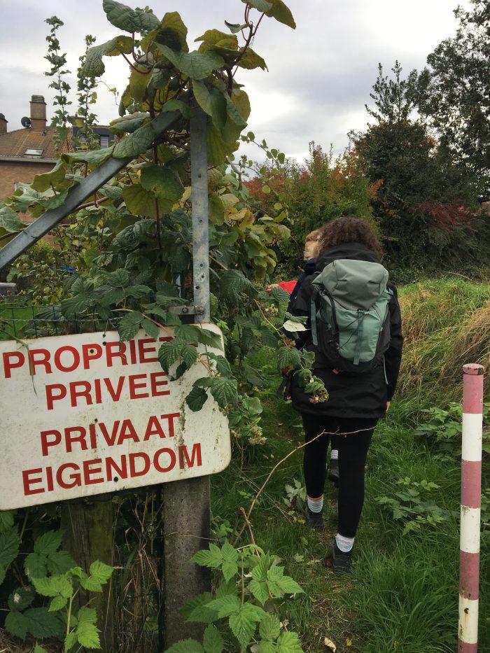 Nous ne sommes pas sur les sentiers de Saint-Jacques-de-Compostelle, ni dans les Alpes, ni sur une île au Japon, mais entre la ville et la nature à Bruxelles. Pendant quelques heures, entre parcours guidé et errance, le temps du quotidien est déconnecté, l’attention se déplace, des évènements peuvent alors survenir.