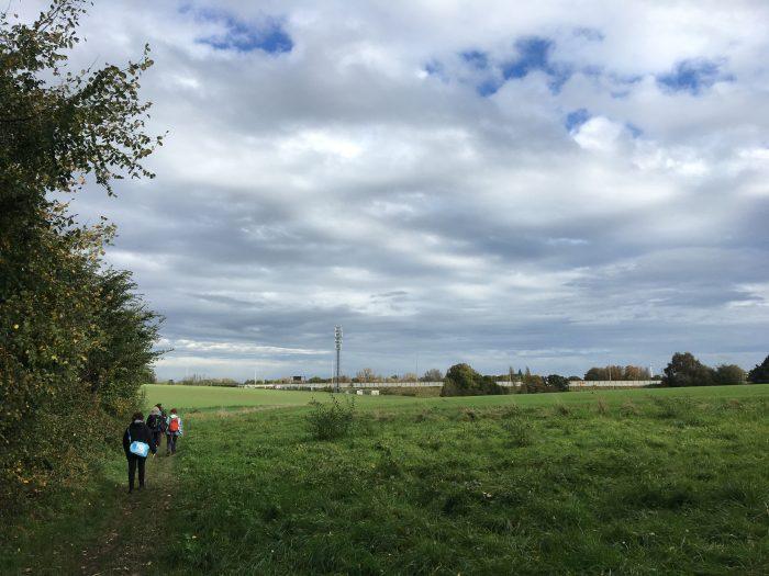 Des personnes se rassemblent pour marcher, je les rejoins.